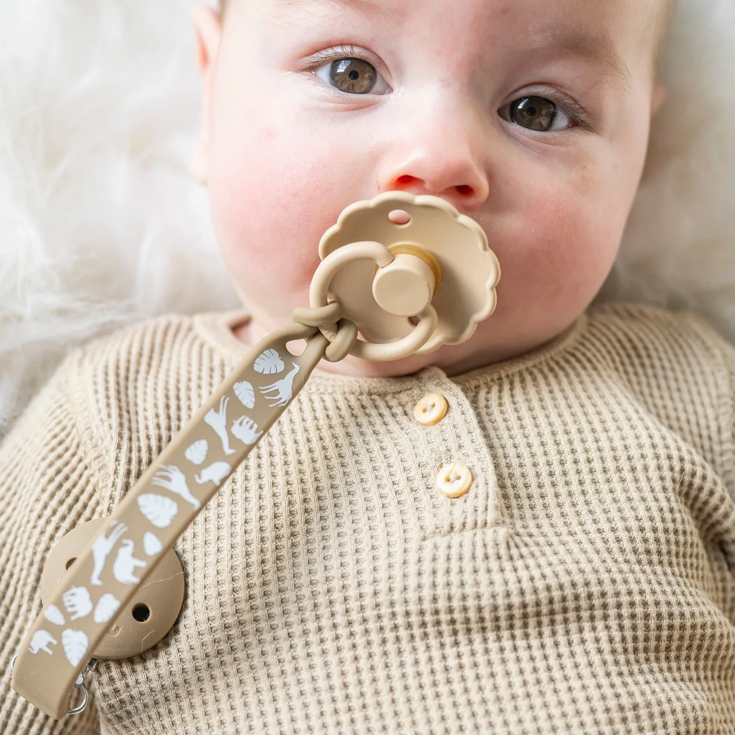 С этим силиконовым зажимом для пустышки вы больше никогда не потеряете пустышку вашего ребенка. Зажим для пустышки оснащен универсальным держателем, к которому можно легко прикрепить любимую пустышку вашего ребенка. Используйте петлю для крепления пустышки и практичный металлический зажим для крепления шнура пустышки к одежде вашего ребенка. Незаменимый аксессуар с рождения, а также отличная идея для подарка.