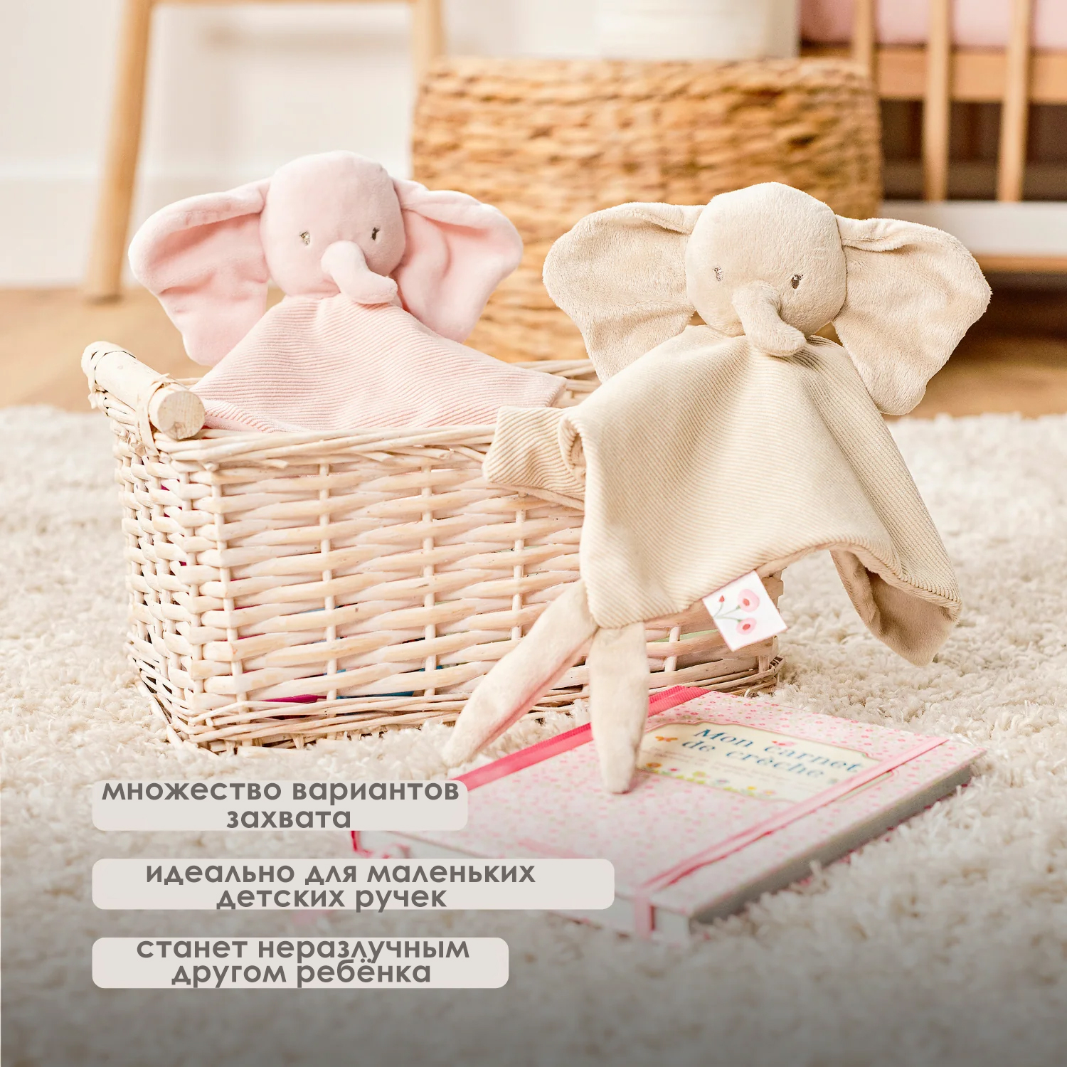 Эта мягкая игрушка-обнимашка от Nattou в форме слоника из ребристого бархата станет неразлучным другом вашего ребёнка с самого рождения. Сочетание ребристого бархата и мягкой бархатной спинки придаёт этому слонику-обнимашке уникальный вид и удивительно знакомое ощущение. Благодаря компактному размеру и множеству вариантов захвата игрушка идеально подходит для маленьких ручек, которые могут ее обнимать и брать с собой куда угодно. Маленький слоник дарит спокойствие и уверенность даже новорождённым и недоношенным детям. Кроме того, на игрушке есть удобная петелька, к которой можно прикрепить цепочку для пустышки, чтобы она всегда была под рукой. Игрушка станет прекрасным подарком для малыша на любой праздник.