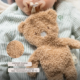 Это мягкая и многофункциональная плюшевая игрушка, которая сочетает в себе комфорт и практичность. Благодаря приятному на ощупь велюру и плюшевой ткани она невероятно мягкая и дарит малышу ощущение безопасности. Благодаря удобному шнурку пустышка всегда будет под рукой. Лёгкая и компактная, она идеально подходит для маленьких ручек и станет прекрасным подарком для малыша.