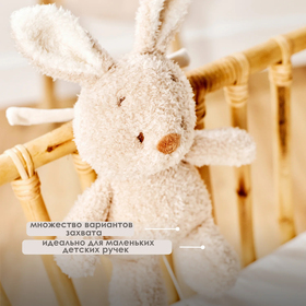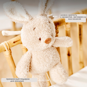 Плюшевый музыкальный кролик Nattou подарит спокойствие и ощущение безопасности вашему малышу в первые месяцы его жизни. Благодаря длинным висячим ушкам, мягкой плюшевой ткани и приятной на ощупь форме он быстро станет самым верным другом вашего малыша. Потяните за силиконовое кольцо, и музыкальная шкатулка воспроизведёт успокаивающую мелодию Ла-Ла-Лей — идеальный вариант для вечернего сна или спокойных моментов в дороге. Благодаря практичным шнуркам музыкального кролика можно легко прикрепить к кроватке, люльке, автокреслу, манежу или коляске. Очаровательный плюшевый мишка и прекрасный подарок для малыша.