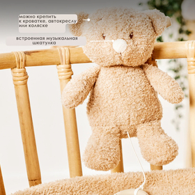 Плюшевый мишка Nattou с музыкальной шкатулкой — это идеальное сочетание мягкости, безопасности и комфорта. Благодаря милому личику и приятной на ощупь форме он быстро станет любимым другом вашего малыша. Потяните за силиконовое кольцо, и встроенная музыкальная шкатулка воспроизведёт успокаивающую мелодию Ла-Ла-Лей, которая поможет вашему ребёнку расслабиться или спокойно заснуть. Благодаря удобным шнуркам плюшевого мишку с музыкальной шкатулкой можно легко прикрепить к кроватке, люльке, манежу, автокреслу или коляске. Милый аксессуар и замечательный подарок для малыша.