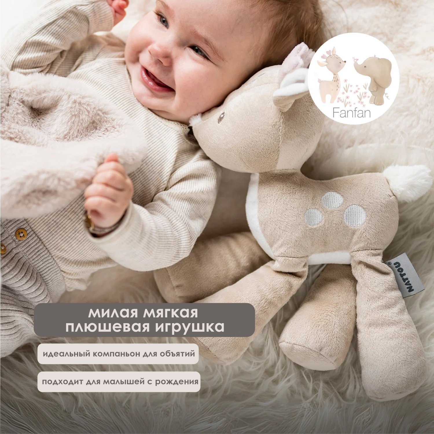 Коллекция Fanfan от Nattou привнесёт в мир вашего малыша частичку волшебства благодаря милым слоникам и оленям, которые станут его мягкими друзьями. От уютных пледов до аксессуаров: всё выполнено из мягких материалов в гармоничных цветах, которые излучают спокойствие и нежность. Коллекция Fanfan сочетает в себе милые фигурки и стильный, неподвластный времени дизайн, что делает её тёплым и игривым дополнением к любой детской комнате.