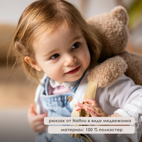 Рюкзак Nattou в виде медвежонка — идеальный первый рюкзак для малышей. Благодаря супермягкой плюшевой ткани и милому дизайну он сразу же становится их любимым спутником. В нём можно хранить маленькие сокровища, перекусы или мягкие игрушки и брать их с собой в приключения. Оригинальный и практичный подарок для малыша, сочетающий в себе функциональность и неотразимое очарование.