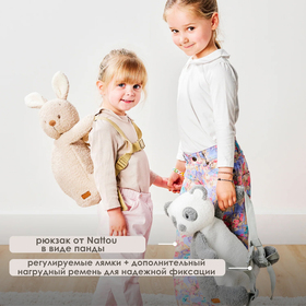 Этот рюкзак с пандой Nattou — идеальное сочетание миловидности и практичности. Мягкая плюшевая ткань делает его неотразимым для вашего малыша, а внутри достаточно места для маленьких сокровищ, перекусов или мягких игрушек. Идеально подходит для прогулок, детского сада или ночёвок.
